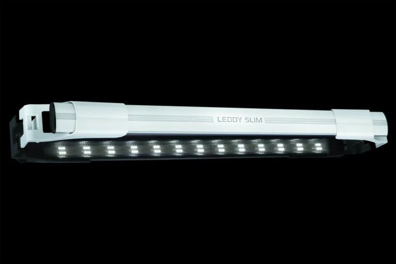 Die LEDDY SLIM-Lampen sind in vier verschiedenen Versionen erhältlich: Die Versionen SUNNY (Farbtemperatur 6500 K) und PLANT (8000 K) sind für Süßwasseraquarien, einschließlich Pflanzenaquarien, konzipiert, während die MARINE (Farbtemperatur 10000 K) und ACTINIC ( 20000 K) Versionen sind für Meerwasseraquarien ausgelegt. Die Linie umfasst Modelle für 20 bis 120 cm lange Aquarien (LEDDY SLIM 5 W, LEDDY SLIM 10 W, LEDDY SLIM 32 W, LEDDY SLIM 36 W). Dank der Verwendung von Leuchtdioden benötigen diese Lampen keinen häufigen Austausch und verbrauchen halb so viel Energie wie herkömmliche Leuchtstofflampen.
