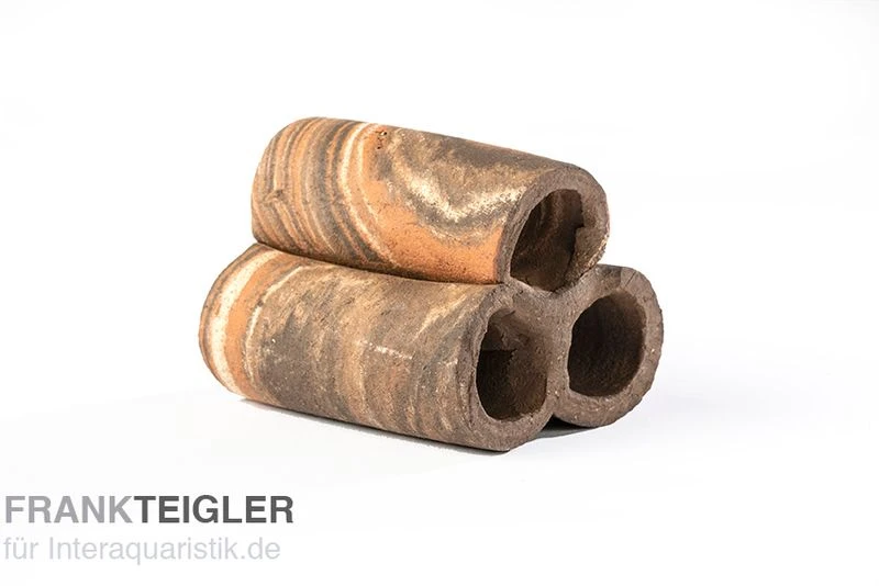 Der tönerne Röhrenturm aus dem Hause Aquariumkeramik ist aus 4 Röhren gefertigt. Eine jede der gebrannten Röhren verfügt über eine Länge und ungefähr 6 – 7 cm bei einem Durchmesser von zirka 1,5 cm. Bei der Herstellung wurde ein sogenanntes Schlickverfahren angewandt, was die zusätzliche Verwendung von Klebstoff unnötig macht.