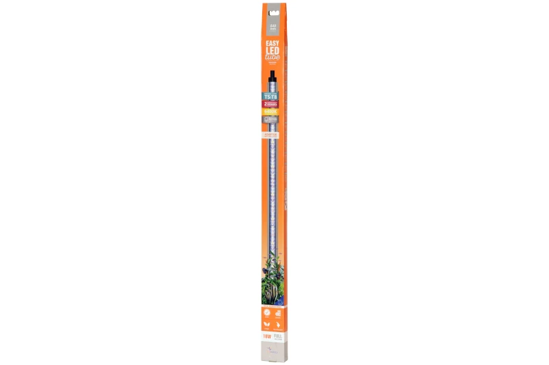 Bei der innovativen Easy LED Tube von Aquatlantis handelt es sich um eine LED Lampe mit einem robusten Gehäuse aus Aluminium. Besagtes Gehäuse ist nicht nur stabil, es sorgt auch für eine hervorragende Wärmeabgabe. Die neuartige LED Lampe ersetzt Leuchtstofflampen in vorhandenen T5 oder T8 Leuchtstoffleuchten und ist in insgesamt 7 Baulängen lieferbar. Mit ihrer Lichtfarbe von 6400 K ist sie optimal geeignet für den Einsatz in Süßwasseraquarien, wo sie für prächtigen Pflanzenwuchs und optisch ansprechende Fische und Pflanzen sorgt. Die Aquatlantis Easy LED Tube ist in Kombination mit dem Easy LED Control 2 Plus (separat erhältlich) in 2 getrennten Kanälen steuerbar. Damit sind die unterschiedlichen Phasen des Tagesablaufes steuerbar (z.B. Sonnenauf- und -Untergang). Mit den separat erhältlichen Zubehörteilen kann die Aquatlantis Easy LED Tube auch als Hängeleuchte über dem Aquariums oder als Aufsetzleuchte genutzt werden.