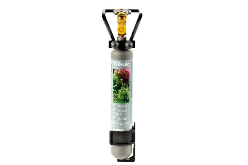 CO²-Stahlflasche mit Halterung zur Wandmontage.