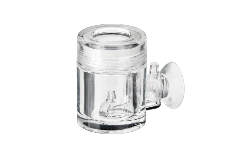 Kleines, effektives Gerät mit integriertem Blasenzähler und Rückschlagventil. Einfach anzuschließen und mit Saughalter an der Aquarium-Scheibe zu befestigen.