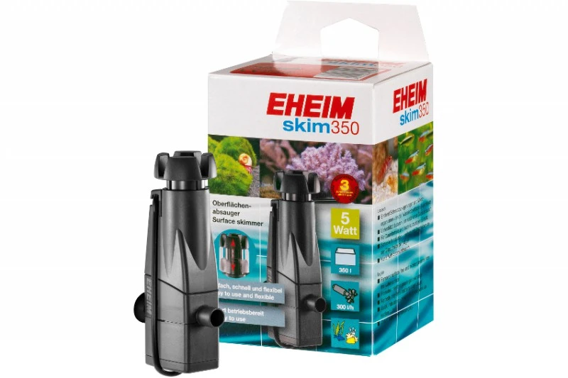 Der Eheim Mikro Oberflächenabsauger skim350 entfernt die Kahmhaut (Film aus Staub, Mikroorganismen, Futterfetten und Ölen) an der Wasseroberfläche von Süß- oder Meerwasseraquarien bis 350 Liter, wodurch die Wasseroberfläche glaskar bleibt und der Sauerstoffgehalt erhöht wird. Dabei kann der Eheim Mikro Oberflächenabsauger skim350 sowohl im Dauerbetrieb, als auch für den kurzfristigen Einsatz genutzt werden. Bakterien bzw. Schmutzpartikel, die vom Eheim Mikro Oberflächenabsauger skim350 angesaugt werden, werden im Filterschwamm gesammelt, der nach Beendigung der Arbeit zur gründlichen Reinigung herausgenommen werden kann. Dieses ist vor allen Dingen dann erforderlich, wenn mehrere Aquarien mit dem Eheim Mikro Oberflächenabsauger skim350 gereinigt werden, damit keine Algensporen oder Krankheiten von einem Becken ins andere übertragen werden.
