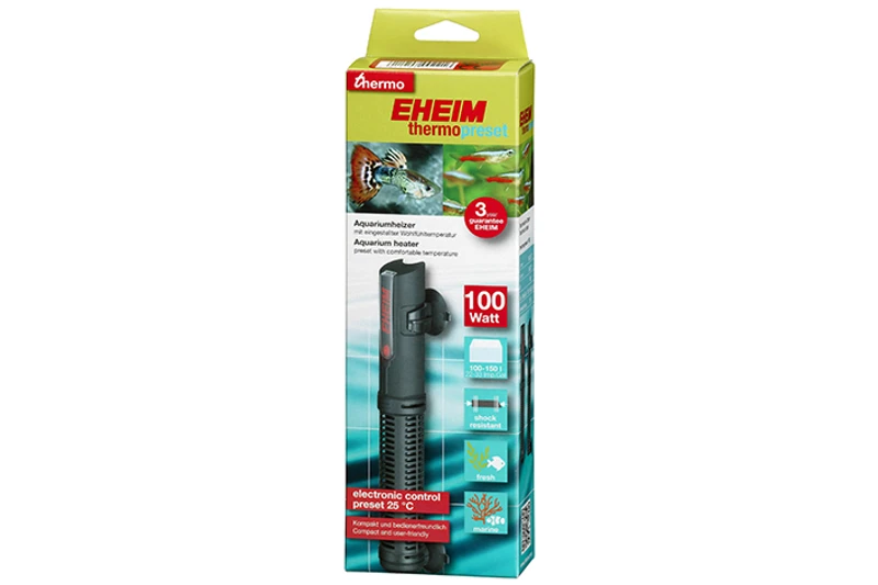 Einfacher geht es wirklich nicht: Beim Aquariumheizer EHEIM thermopreset ist die Wohlfühltemperatur für die Aquariumbewohner fest eingestellt. Ihr Becken bleibt konstant bei 25 Grad Celsius. Die elektronische Regelung garantiert Ihnen eine extrem hohe Temperaturgenauigkeit, das hocheffiziente Heizelement sorgt für eine gleichmäßige Wärmeverteilung.