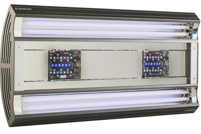 | Lichtlenkung | Bluetooth, 5 Kanäle: Kanäle 1+2 = T-5 Röhrenpaare, Kanäle 3-5 = Farbkanäle der LED-Boards / nur Android |