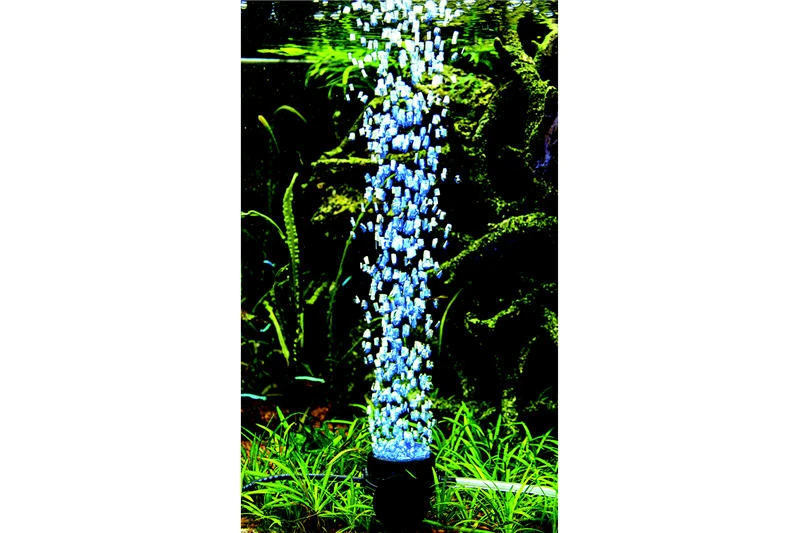 Ein besonderer Effekt entsteht, wenn Sie die Ausströmerfunktion* nutzen. Schließen Sie dazu einfach eine Membranpumpe mit einem 4/6 mm Schlauch an die Bubble Air Spot an und erzeugen Sie so ganz einfach viele sanft beleuchtete Luftblasen, die Ihr Aquarium optimal mit Sauerstoff versorgen und dabei besonders im dunkeln äusserst dekoativ wirken.