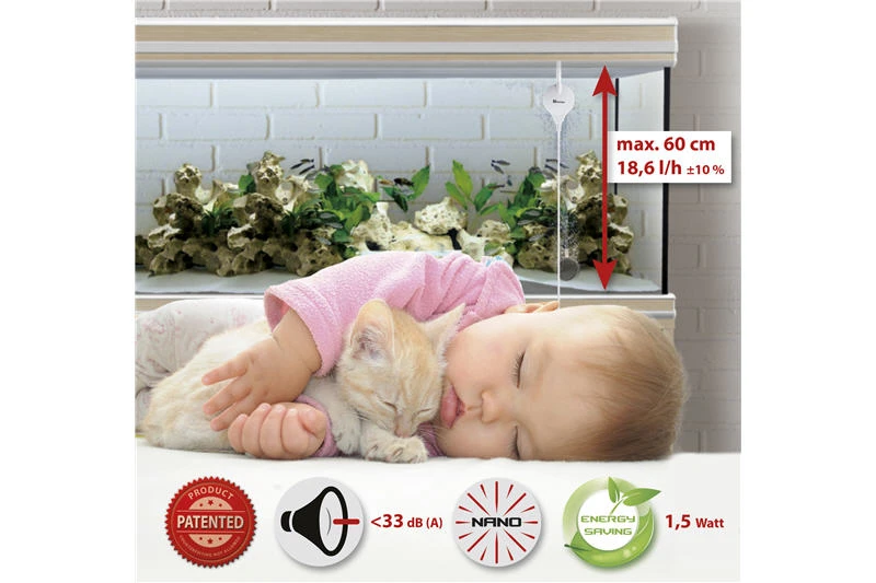 - Die Piezopumpe hat eine Luftleistung von 18 Litern in der Stunde
