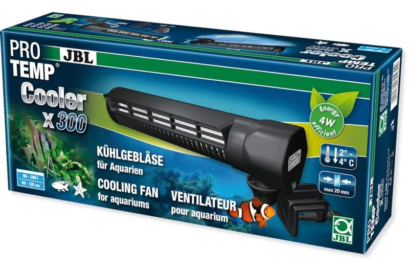 - Wasserkühlung mittels Luftstrom an der Wasseroberfläche = Verdunstungskälte. Erweiterbar mit JBL Temperatursteuerung CoolControl.