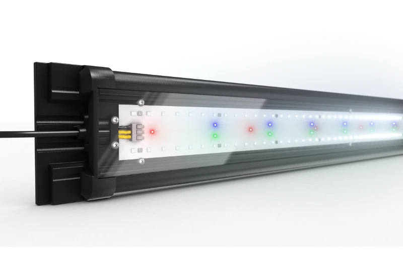 Die HeliaLux Spectrum ist eine Hochleistungs-LED-Einsatzleuchte für Ihr JUWEL Aquarium. Speziell entwickelte Vollspektrum-LEDs arbeiten mit größtmöglicher Leistung. Die Kombination aus weißen 9000 Kelvin und 6500 Kelvin LEDs ermöglichen ein optimales Pflanzenwachstum, rote, grüne und blaue LEDs stehen für intensive Farben und maximalen Kontrast und fördern die Vitalität der Bewohner Ihrer Unterwasserwelt. Die entstehende Wärme wird bestmöglich durch die Aluminiumwaben abgeleitet und das Sicherheitsglas ist langlebig und kratzfest.
