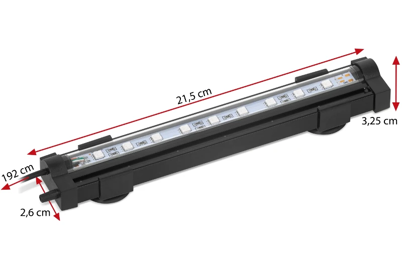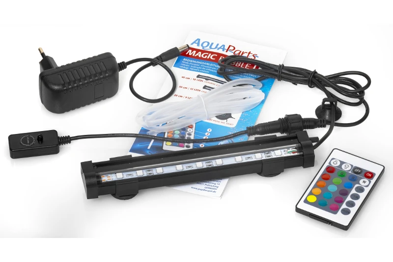 ist eine LED-Lichtleiste mit Ausströmer (20 cm / 18 LEDs coolwhite) und Fernbedienung für stimmungsvolle Beleuchtungseffekte und eine Anreicherung des Sauerstoffs im Aquarienwasser. Insgesamt stehen Ihnen 16 Farben in 4 unterschiedlichen Lichtmodi zur Verfügung. Das Gerät verfügt über eine Memoryfunktion und kann auch als Mondlicht verwendet werden.
