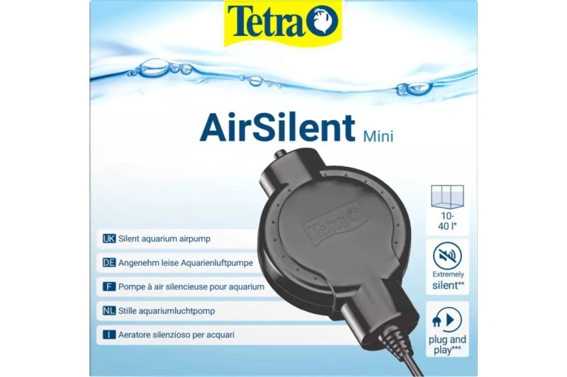 Die kompakte Tetra AirSilent Mini Luftpumpe ist speziell für Aquarien in Wohn- und Schlafzimmern konzipiert worden, deshalb wurde bei der Entwicklung besonders auf die Laufruhe von nur 34 dB Wert gelegt. Dieser Wert entspricht der Lautstärke von leisem Flüstern und ist aufgrund des piezoelektrischen Effekts möglich. Dieser Effekt sichert gleichzeitig einen sehr geringen Energieverbrauch der Tetra AirSilent Mini Luftpumpe und macht das wechseln von Membranen überflüssig. Aufgrund der geringen Größe ist die Luftpumpe besonders gut zu verstecken. Mit dem praktischen Saugnapf, zur Befestigung direkt am Aquarium, wird die Übertragung von Vibrationen zusätzlich vermindert.